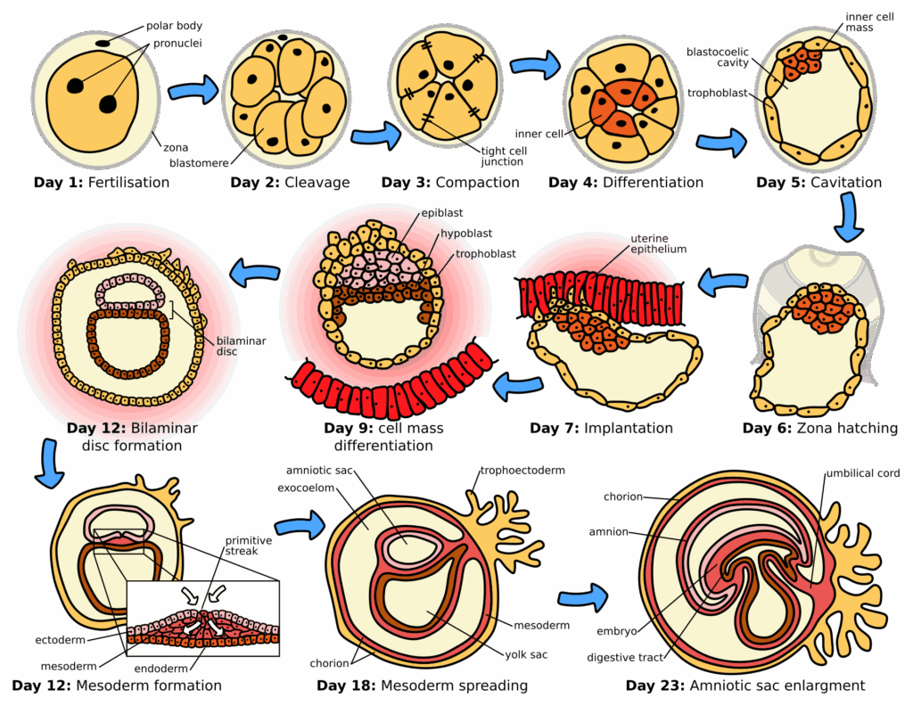 1 ⁄ 22 Meer details De eerste stadia van de ontwikkeling van het menselijk embryo